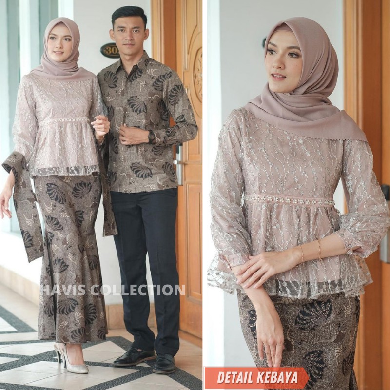 Batik couple kebaya brukat modern setelan kebaya wisuda baju brokat atasan wanita muslim terbaru rok batik pasangan pesta kondangan.